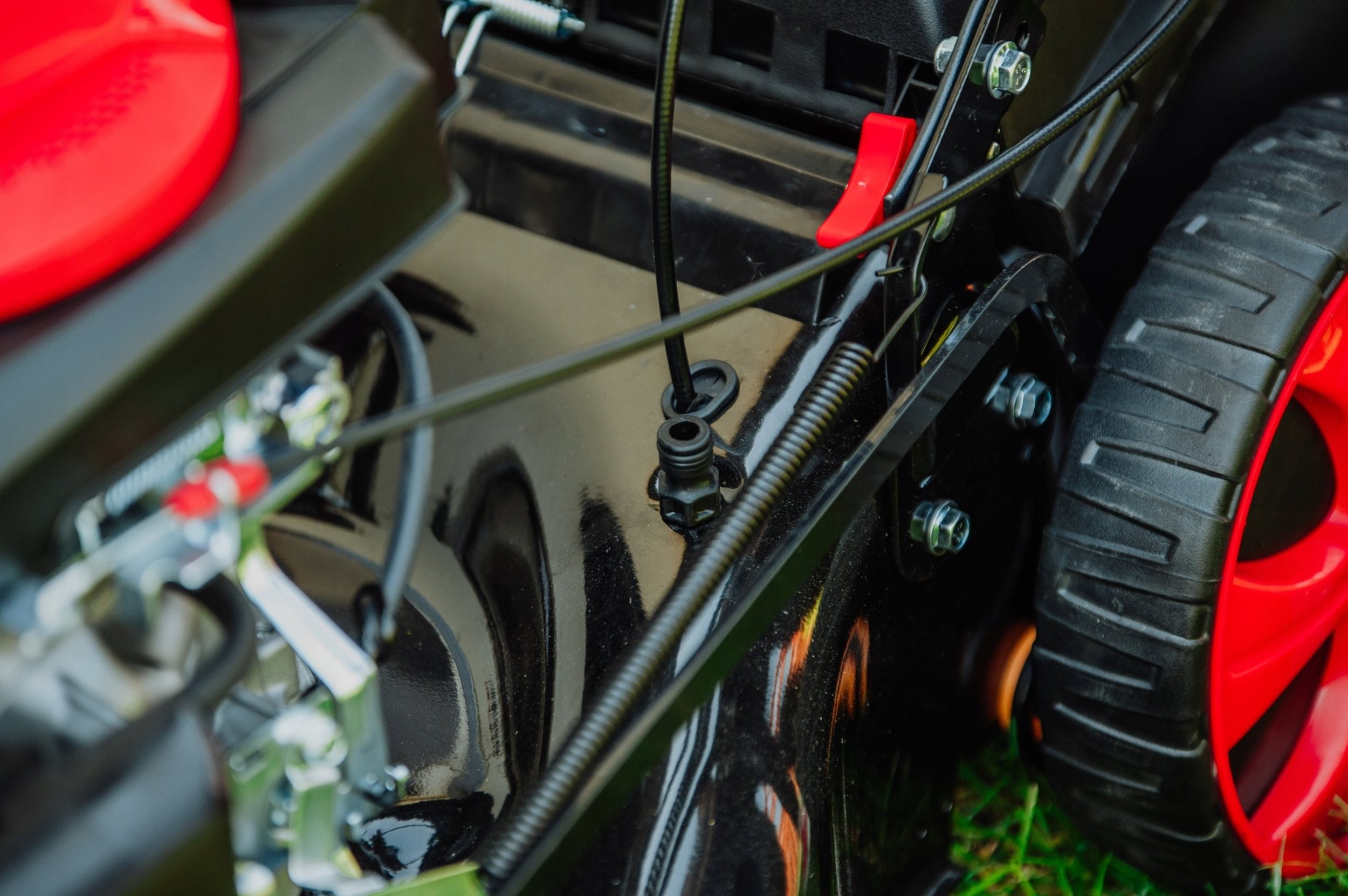 • Im Lieferumfang ist Öl für den Rasenmäher enthalten, fülle es vor dem Starten ein.