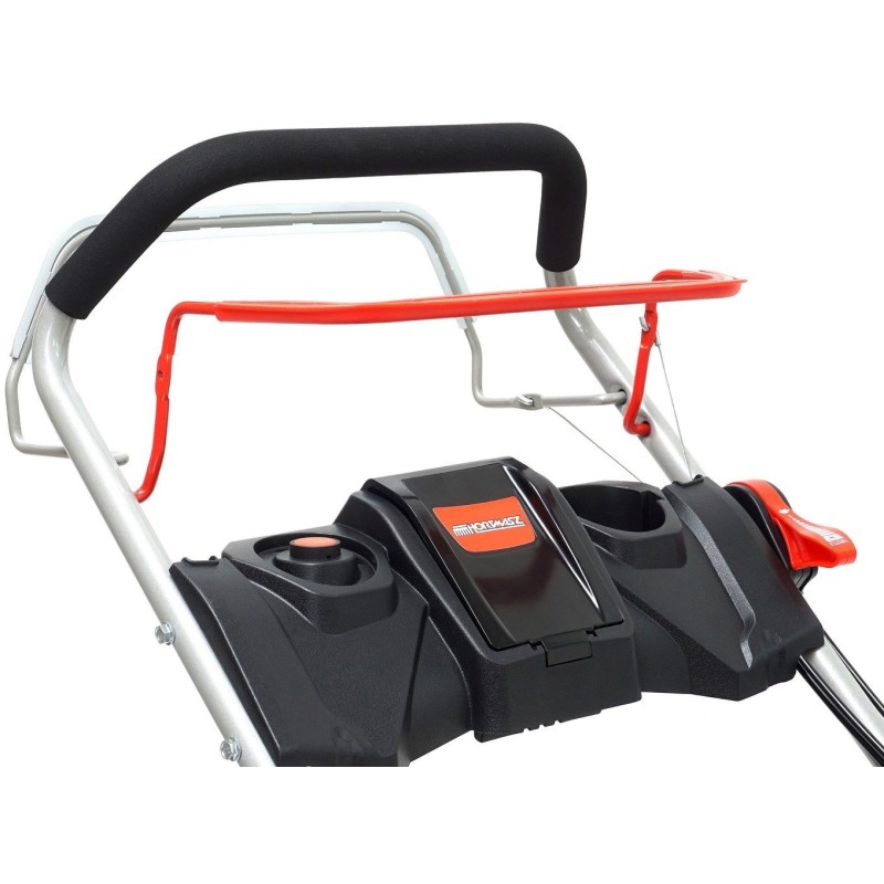 Der Rasenmäher wurde mit Blick auf den Komfort des Benutzers entwickelt. Der ergonomisch geformte Griff lässt sich an die Körpergröße des Benutzers anpassen, was die Arbeit erheblich erleichtert. Darüber hinaus ermöglicht die zentrale Schnitthöhenverstellung in fünf Stufen eine einfache Anpassung an unterschiedliche Bedingungen.