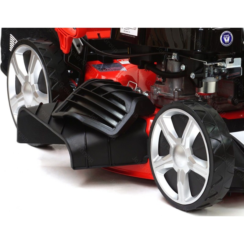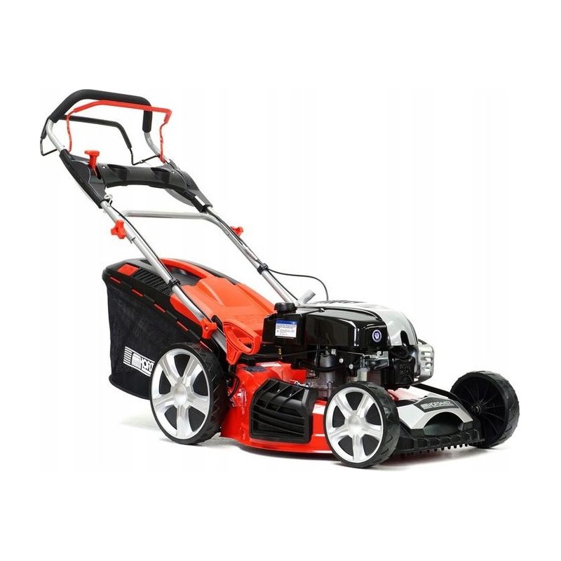Motortyp: Verbrennungsmotor, Viertakt, obenliegende Ventile. Motorhersteller: Briggs & Stratton. Motormodell: 750EX SERIES DOV Ready Start. Hubraum: 161 cm³. Nennleistung: 2,68 kW. Anlasser: Handstart. Schnittbreite: 51 cm. Antriebsart: Eigenantrieb auf die Hinterräder. Getriebeart: General Transmission – verstärkte Konstruktion. Funktionen: Heckauswurf, Auffangbehälter, Seitenauswurf, Mulchen (4-in-1). Schneidhöhenverstellung: 5-stufig. Art der Höhenverstellung: zentral für alle Räder. Minimale Schnitthöhe: 25 mm. Maximale Schnitthöhe: 80 mm. Gehäuse: Stahl. Fassungsvermögen des Grasfangkorbs: 62 l. Art des Grasfangkorbs: Netzkorb mit Kunststoffdeckel. Räder mit Kugellagern: ja. Füllstandsanzeige für den Grasfangkorb: ja. Gehäuse-Reinigungsfunktion: ja.