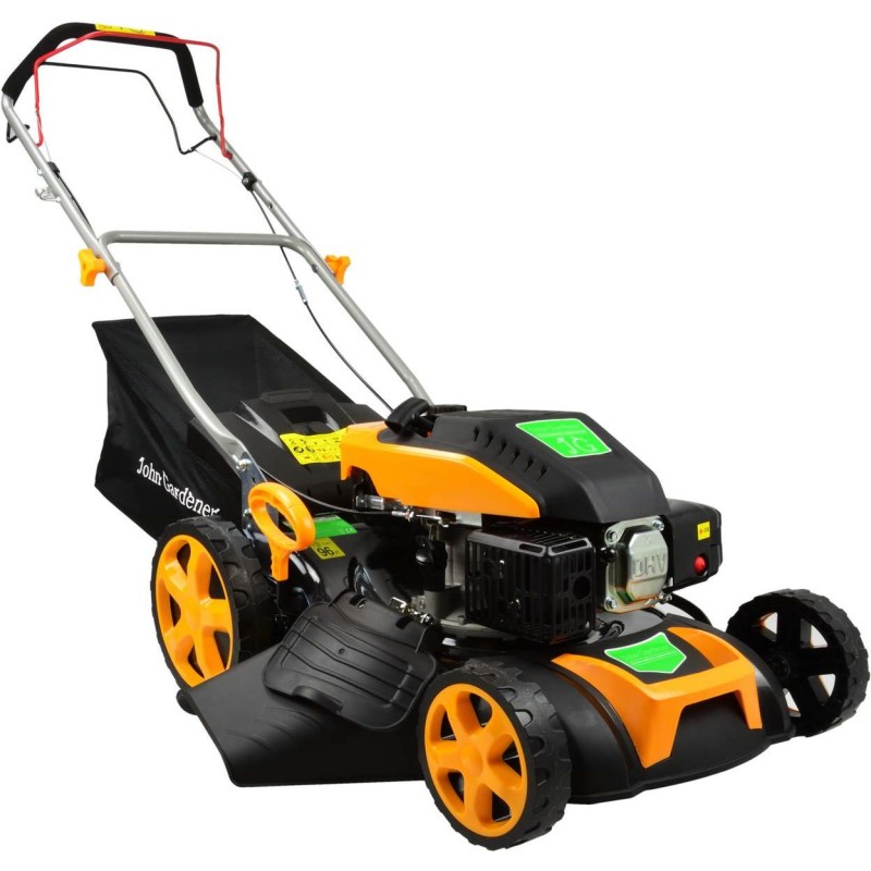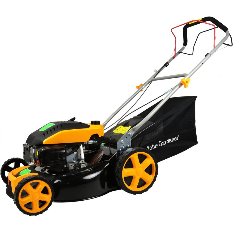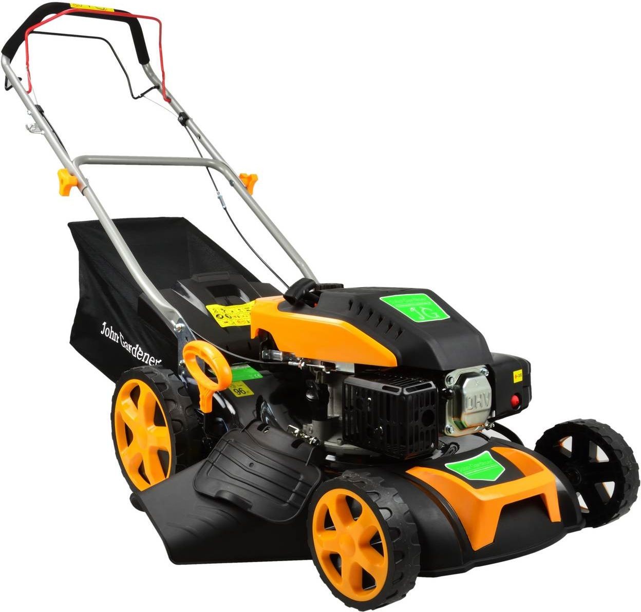 Benzinrasenmäher mit Antrieb 46 cm JG Nennleistung: 2,7 kW Motor 139 cm³ Schnittbreite 460 mm 8-stufige Schnitthöhenverstellung 25–75 mm Antrieb Seitenauswurf und Heckauswurf in den Grasfangkorb Technische Daten Maximale Leistung: 2,7 kW Motortyp: 4-Takt, 1 Zylinder Hubraum: 139 cm³ Start: manuell Schnittbreite: 460 mm Schnitthöhe: 25–75 mm Einstellung: 8-stufig, zentral Auswurf: seitlich / nach hinten Fassungsvermögen des Grasfangkorbs: 60 Liter Radgröße vorne/hinten: 175 mm / 250 mm Zusatzfunktionen: Antrieb Lieferumfang Benzinrasenmäher mit 60-Liter-Grasfangkorb Zündkerzenschlüssel