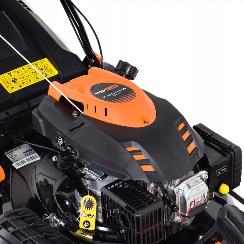 Ausgestattet mit einem 196-cm³-Motor bietet der Rasenmäher eine Leistung von 3,60 kW, was ein effektives Mähen selbst von dichtem Gras ermöglicht. Der Viertakt-Motor mit obenliegenden Ventilen sorgt für Zuverlässigkeit und lang anhaltende Leistung.