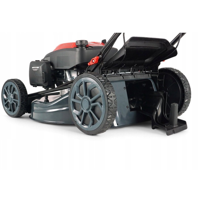 Das Gerät ist mit einem 60-Liter-Grasfangkorb mit Füllstandsanzeige ausgestattet, was die Arbeit erheblich erleichtert. Dank des großen Fassungsvermögens kann der Benutzer länger mähen, ohne den Korb häufig leeren zu müssen, was den Bedienkomfort erhöht.