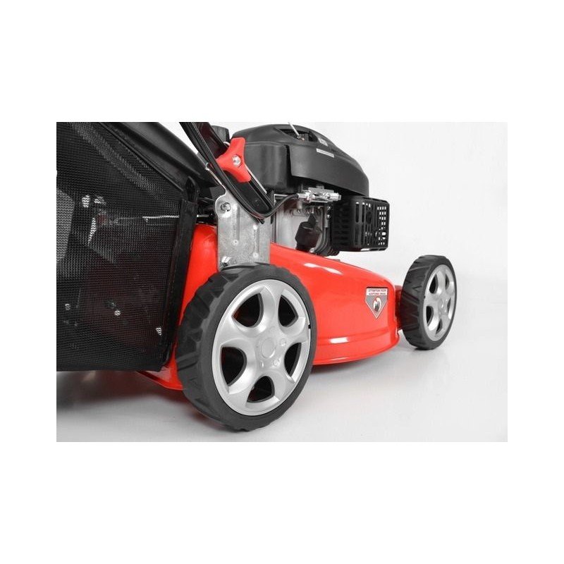 Benzinrasenmäher HECHT 540 Dank der fortschrittlichen Schneidkammer und dem speziell geformten Messer sorgt er für hervorragende Mähergebnisse. Er verfügt über einen großen 45-Liter-Grasfangkorb mit langem Griff, sodass sich der Inhalt leicht entleeren lässt. Die Schnittbreite beträgt 41 cm, was bedeutet, dass er problemlos in jedem Garten, auch in kleineren, eingesetzt werden kann. Der Rasenmäher wird von einem hochwertigen HECHT-OHV-Motor mit 3,5 PS (Hubraum 99 cm³) angetrieben, der zuverlässig für ausreichende Leistung sorgt. Um das Starten des kalten Motors zu erleichtern, ist er mit einer Primer-Pumpe ausgestattet (eine Kraftstoffpumpe, dank der der Kraftstoff schneller zum Vergaser gelangt).