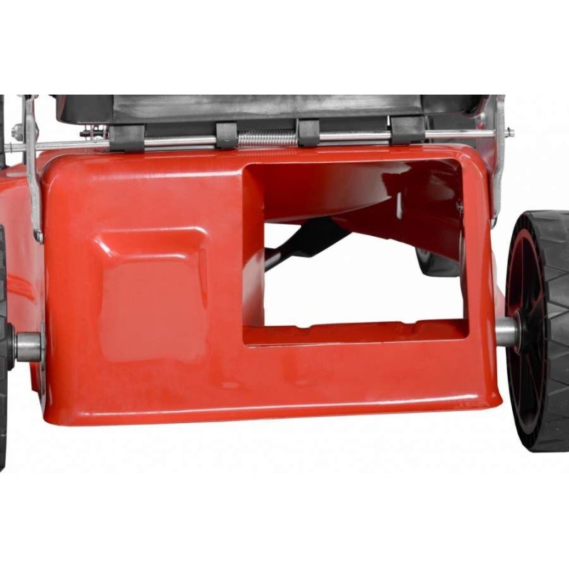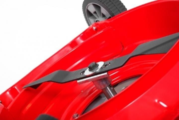 Der gesamte Rasenmäher ist so konzipiert, dass er höchsten Bedienkomfort bei hervorragenden Mähergebnissen bietet. Dank seines geringen Gewichts ist die Handhabung bequem und es entsteht kein unnötiger Mehraufwand. Die Schnitthöhe lässt sich von 25 bis 55 mm einstellen. Der lange Griff lässt sich zur besseren Aufbewahrung leicht zusammenklappen. Der lange Steuerhebel ist komfortabel und sowohl für Rechts- als auch für Linkshänder geeignet, da er über die gesamte Länge des Griffs verläuft. Empfohlene Fläche: 700 m².