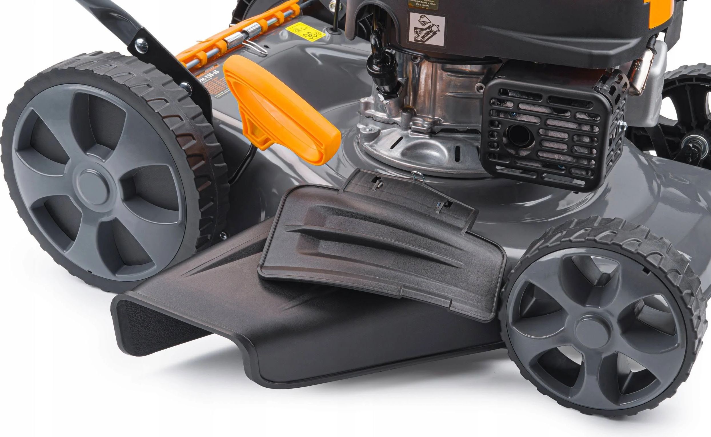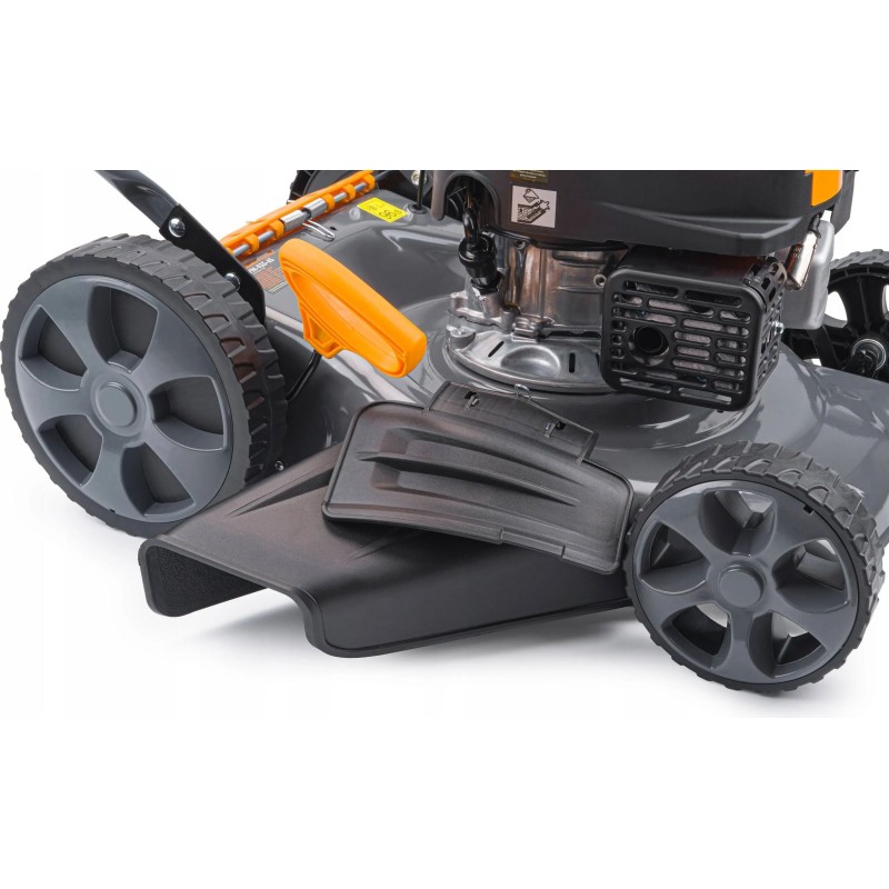 • Heckantrieb mit kugelgelagerten Rädern – dies erleichtert das Mähen großer Flächen und von Flächen mit sehr hohem Gras erheblich