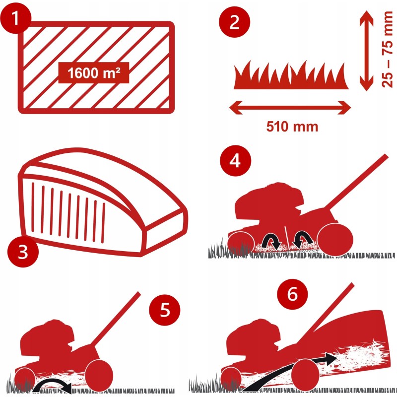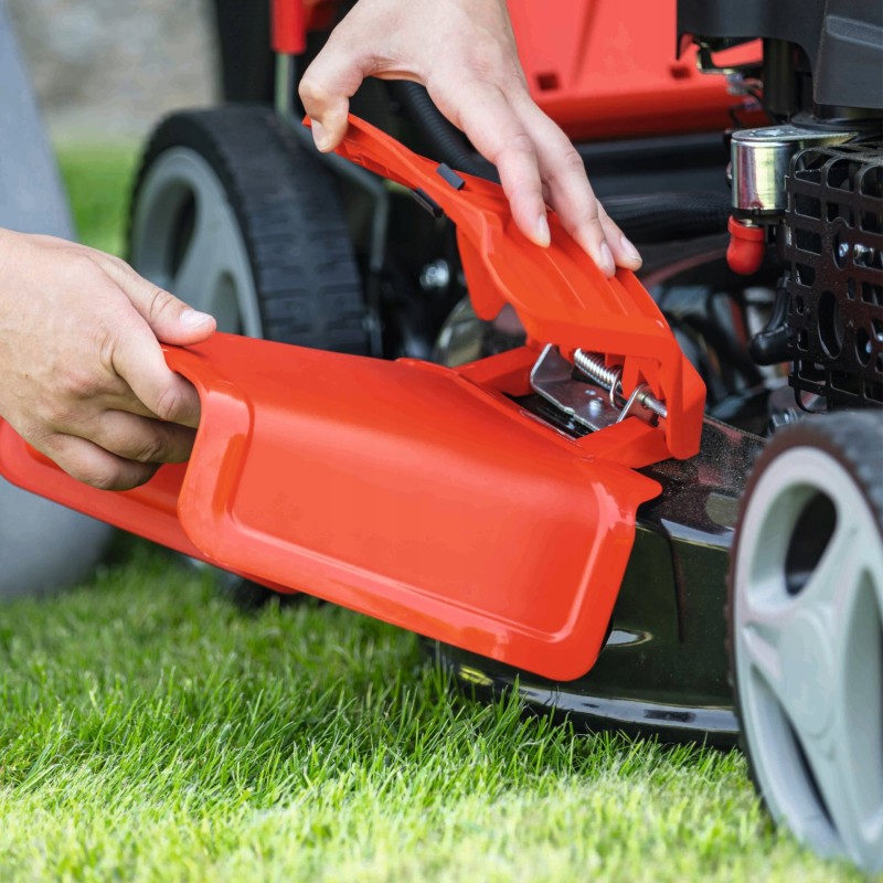 Das Modell MS173-51 bietet mehrere Mähmodi, was seine Vielseitigkeit erhöht. Das Standardmähen mit Heckauswurf ermöglicht eine schnelle Beseitigung des gemähten Grases. Die Mulchfunktion, die nach dem Einbau einer speziellen Einlage (im Lieferumfang enthalten oder separat erhältlich) verfügbar ist, zerkleinert das gemähte Gras in feine Partikel, die anschließend als natürlicher Dünger für den Rasen dienen. Der optionale Seitenauswurf ermöglicht das Mähen von höherem Gras, ohne dass der Grasfangkorb geleert werden muss.