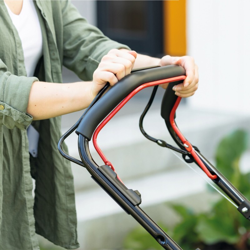 Der Scheppach-Rasenmäher MS173-51 wurde mit Blick auf den Komfort des Benutzers entwickelt. Der ergonomisch geformte Griff mit weicher Oberfläche sorgt für einen sicheren Halt und verringert die Ermüdung der Hände bei längerem Einsatz. Der klappbare Griff erleichtert die Lagerung und den Transport des Rasenmähers. Große Räder, darunter angetriebene Hinterräder (sofern das Modell über einen Antrieb verfügt), sorgen für eine reibungslose Fortbewegung auf unebenem Gelände und erhöhen die Manövrierfähigkeit des Geräts.