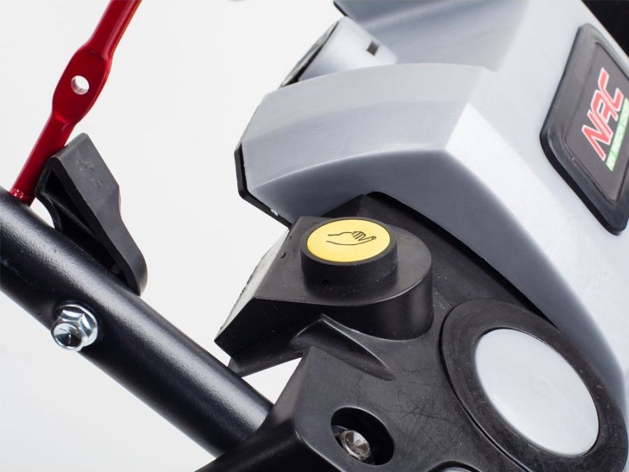 • Dank des Elektrostarters lässt sich der Rasenmäher per Knopfdruck starten, ohne dass man an einem Seil ziehen muss.