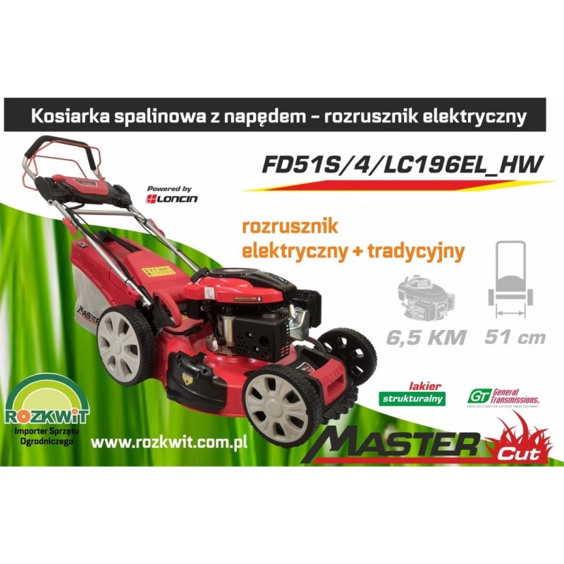 Benzin-Rasenmäher MasterCut MASTERCUT FD51S/4/LC196EL_HW – BENZIN-RASENMÄHER MIT 5-PS-MOTOR / 51 cm SCHNITTBREITE, ELEKTRISCH + TRADY