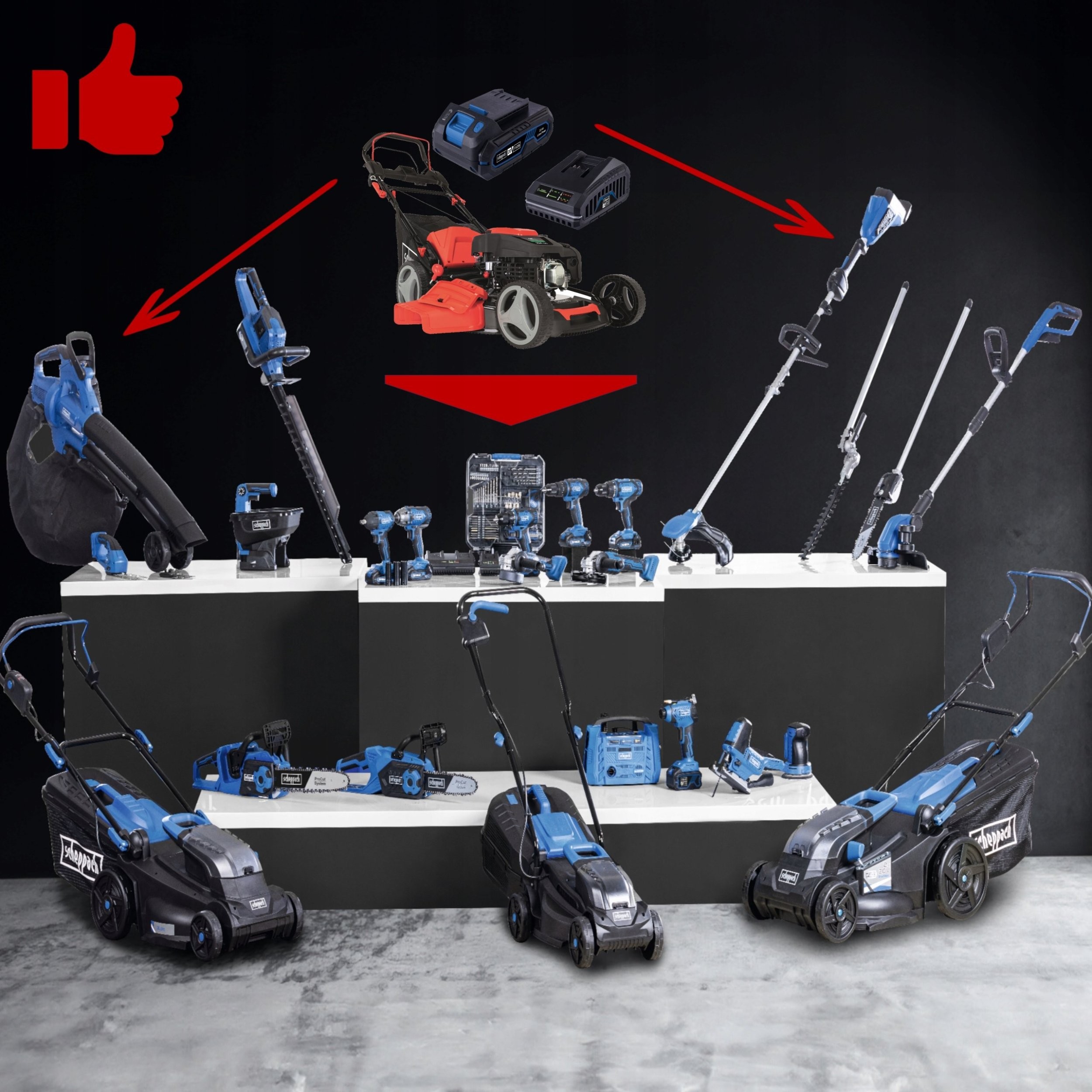 *basierend auf dem 2Ah 20V IXES-Starterakku des Rasenmähers MS225-53E ab der Saison 2024!! 50 verschiedene Elektrowerkzeuge für Haus, Werkstatt und Garten, die mit demselben Akku betrieben werden!