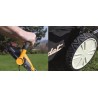 Der Benzinrasenmäher LM3 CRC46s ist die ideale Lösung für Besitzer großer Rasenflächen. Sein herausragendstes Merkmal ist das innovative MYSPEED™-Geschwindigkeitsregelsystem. Die Geschwindigkeit des Rasenmähers hängt vom Druck auf den Griff ab. Bewegt sich der Bediener schnell, wird der Griff stärker gedrückt, wodurch die Geschwindigkeit des Mähers zunimmt. Bewegt sich der Bediener langsamer, ist der Druck auf den Griff geringer und der Antrieb des Mähers verlangsamt sich. Bleibt der Bediener stehen, geht der Hebel in die Neutralstellung und der Antrieb wird ausgeschaltet. Der Motor des Mähers ist ein leistungsstarkes und langlebiges GreenCut-Modell, das auch für unerfahrene Benutzer einfach zu bedienen ist. Darüber hinaus sind die Betriebskosten dieses Antriebs gering, und es sind Wartungssätze erhältlich.