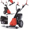 Das Modell BMS196-88 zeichnet sich durch eine robuste Konstruktion aus, die Langlebigkeit und Zuverlässigkeit über viele Saisons hinweg gewährleistet. Große Räder mit Geländeprofil garantieren hervorragende Traktion, selbst auf unebenem Untergrund und an Hängen. Darüber hinaus verfügt der Mäher über einen Radantrieb mit einer Geschwindigkeit von bis zu 2,52 km/h, was das Manövrieren erheblich erleichtert und den Kraftaufwand des Bedieners während der Arbeit verringert.
