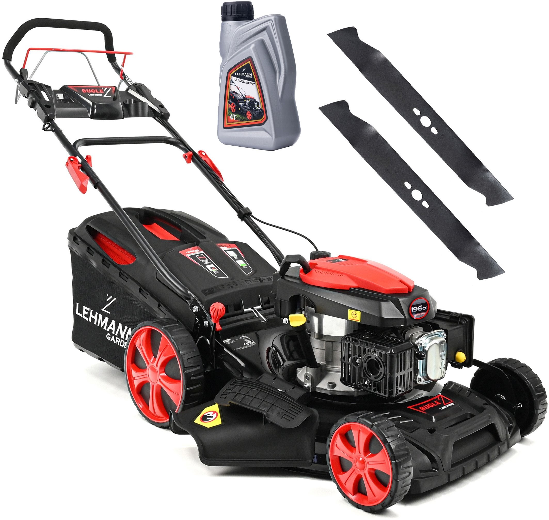 Entscheiden Sie sich für ein bewährtes Modell von Lehmann! Der Rasenmäher mit 196-cm³-Motor bewährt sich selbst bei dichtem und hohem Gras. Das Modell Bugle zeichnet sich durch einen erstklassigen OHV-EURO-5-Motor, ein Metallgehäuse, einen großen 60-Liter-Fangkorb, einen integrierten Antrieb und eine Mulchfunktion aus.