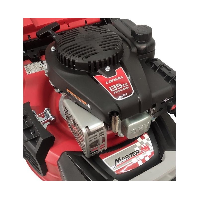 Benzin-Handrasenmäher SH46P/4/LC139 Mastercut Der Benzin-Handrasenmäher SH46P/4/LC139 ist mit einem Markenmotor von Loncin ausgestattet, der für seine Langlebigkeit und niedrigen Betriebskosten geschätzt wird. Getriebe. Der Rasenmäher bewegt sich auf gelagerten 17,5-cm-Rädern mit