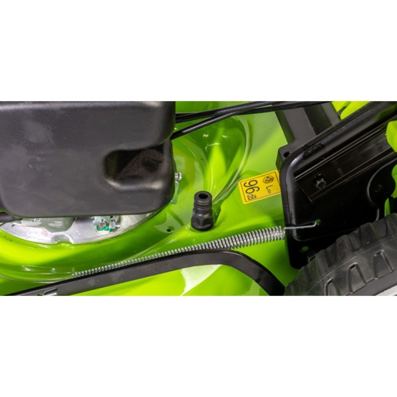 Das hochwertige Stahlgehäuse, das für eine einfache Reinigung konzipiert ist, verfügt über einen speziellen Anschluss für einen Gartenschlauch. Nach jedem Mähen können Sie Ihren Rasenmäher schnell und einfach reinigen.