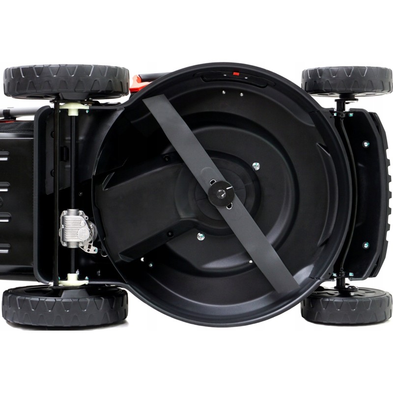 Das Gehäuse des Rasenmähers besteht aus hochwertigem Stahl, was ihm eine außergewöhnliche Steifigkeit und Korrosionsbeständigkeit verleiht. Dank des Korrosionsschutzes und der Pulverbeschichtung wird das Gerät auch unter schwierigen Bedingungen viele Jahre lang seinen Dienst tun.