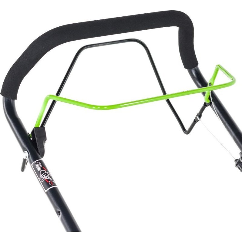 Ergonomische Griffe erleichtern die Steuerung des Mähers, und ihre weiche Oberfläche sorgt für Komfort beim Mähen. Unter dem Griff befindet sich eine praktische Ablage für Getränke.