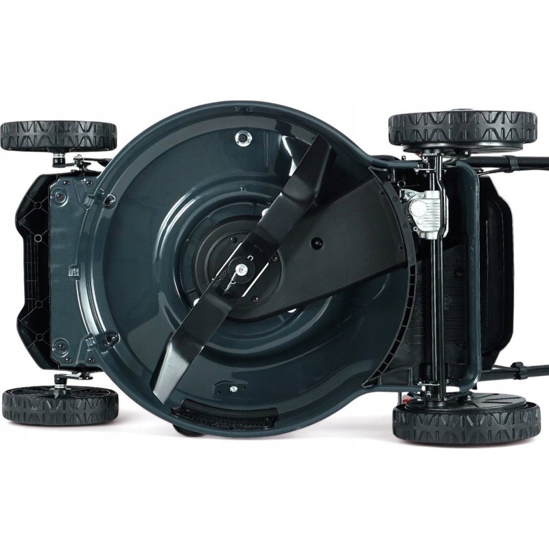 Der Rasenmäher ist mit einem RATO-Viertaktmotor mit 209 cm³ Hubraum und 4 kW Leistung ausgestattet, was für hohe Leistung und geringen Kraftstoffverbrauch sorgt. Dank des OHV-Systems (Overhead-Valve) arbeitet das Gerät reibungslos, und seine Leistung ermöglicht ein effektives Mähen auch unter schwierigeren Bedingungen.