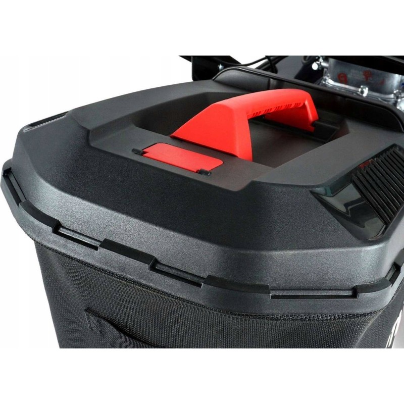 Der Rasenmäher ist mit einem 60 Liter fassenden Grasfangkorb aus Netzgewebe ausgestattet, was längeres Mähen ohne häufiges Entleeren ermöglicht. Darüber hinaus erleichtert die Füllstandsanzeige die Kontrolle über den Füllstand des Korbs, was den Bedienkomfort erhöht.