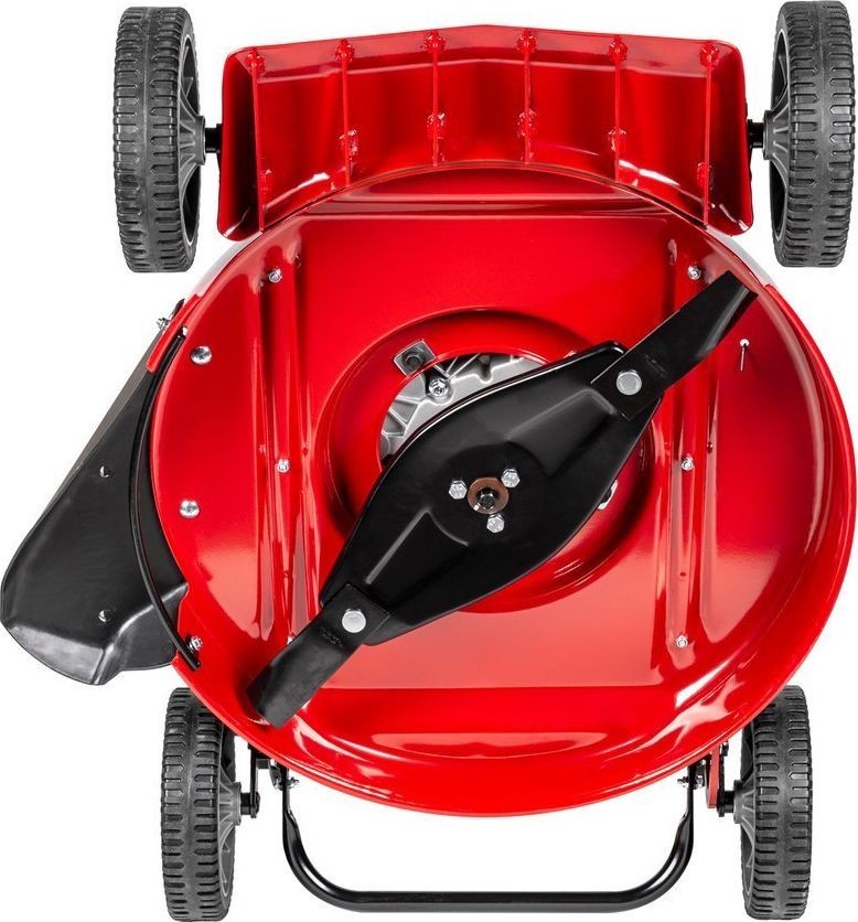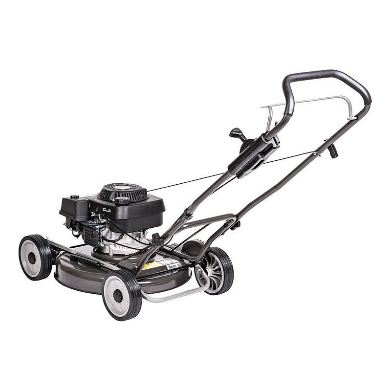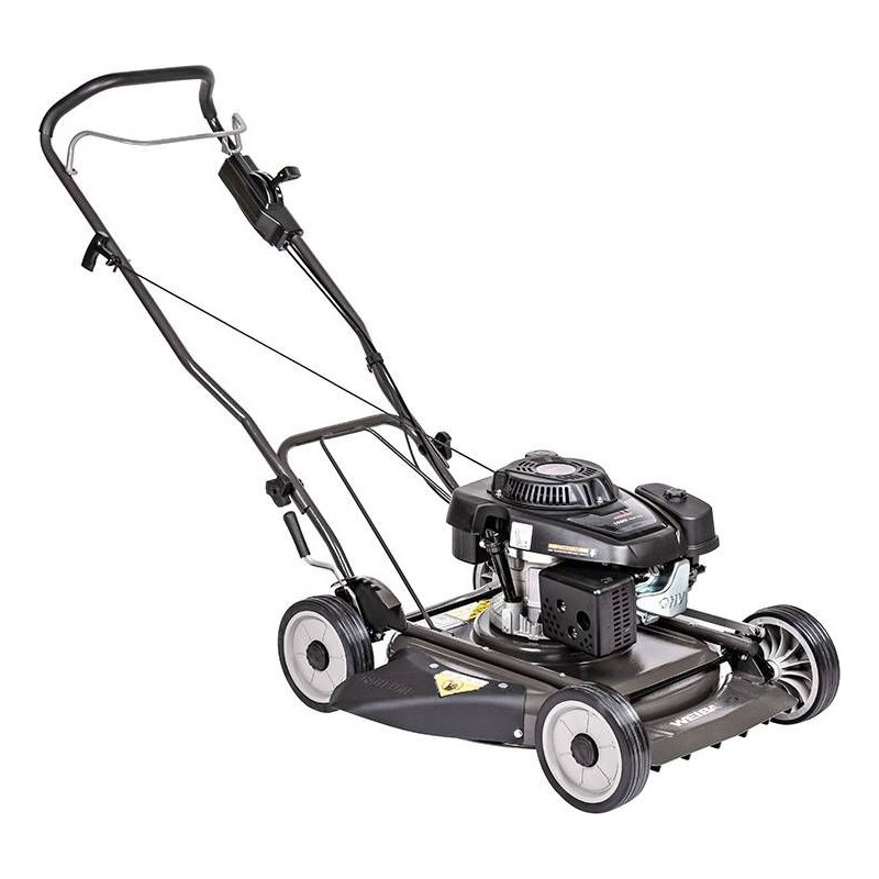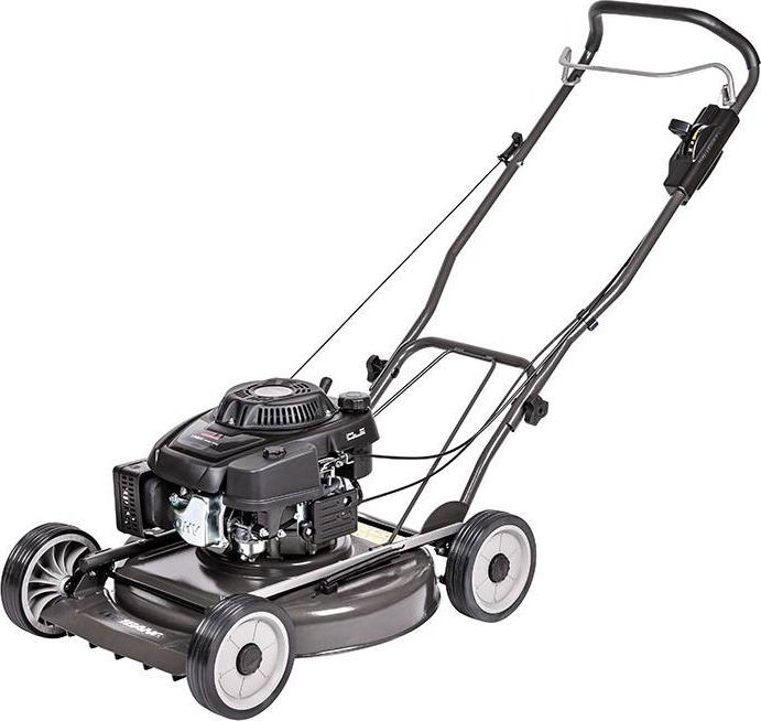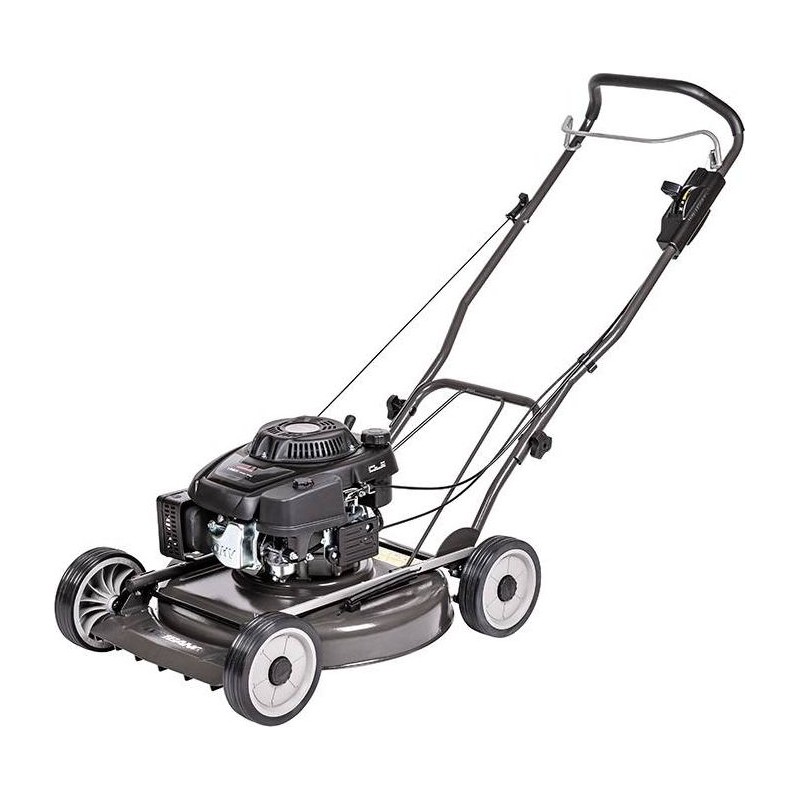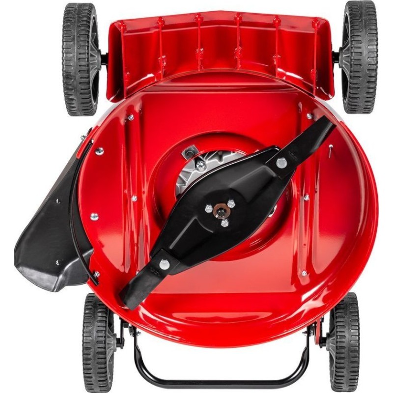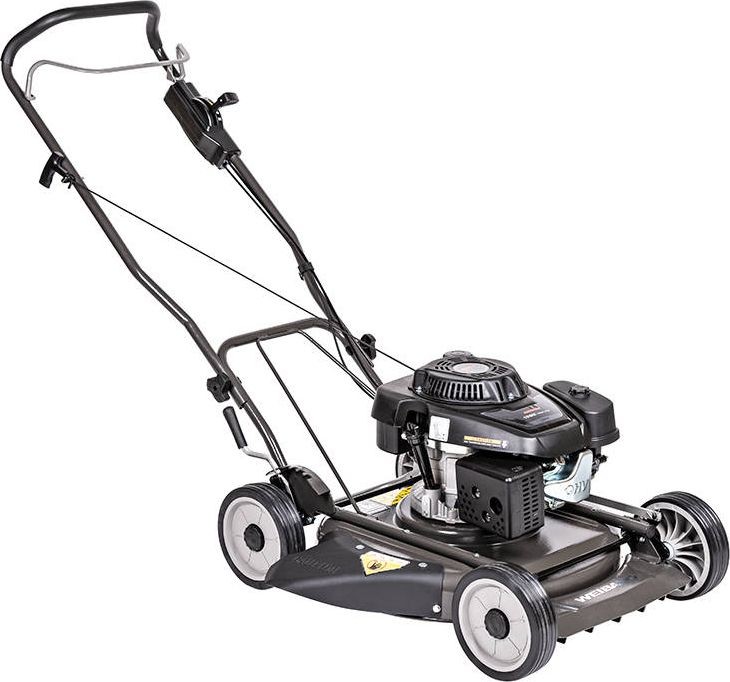Der Benzin-Rasenmäher Weibang WB537 HCU ist ein Rasenmäher ohne Antrieb, der mit einem leistungsstarken Loncin-Viertaktmotor ausgestattet ist. Das 53 cm breite Mähwerk verfügt über einen Seitenauswurf. Die Schnitthöhe lässt sich mit einem Hebel im Bereich von 11 bis 64 mm einstellen. Der Mäher ist mit einer Scheibe ausgestattet, auf der zwei rotierende Messer montiert sind, die selbst mit hohem Gras fertig werden. Das geringe Gewicht und die gelagerten Räder mit einem Durchmesser von 8 Zoll ermöglichen eine einfache Führung des Mähers während der Arbeit.