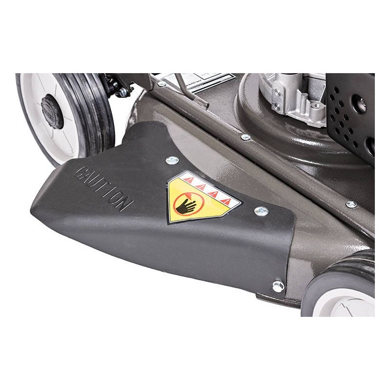 • Der Rasenmäher bewährt sich besonders gut unter schwierigen Bedingungen, da man die Seitenabdeckung öffnen und einen Seitenauswurf-Deflektor daran anbringen kann. Dieser ist sehr leistungsstark und speziell für das Mähen von langem und nassem Gras konzipiert.
