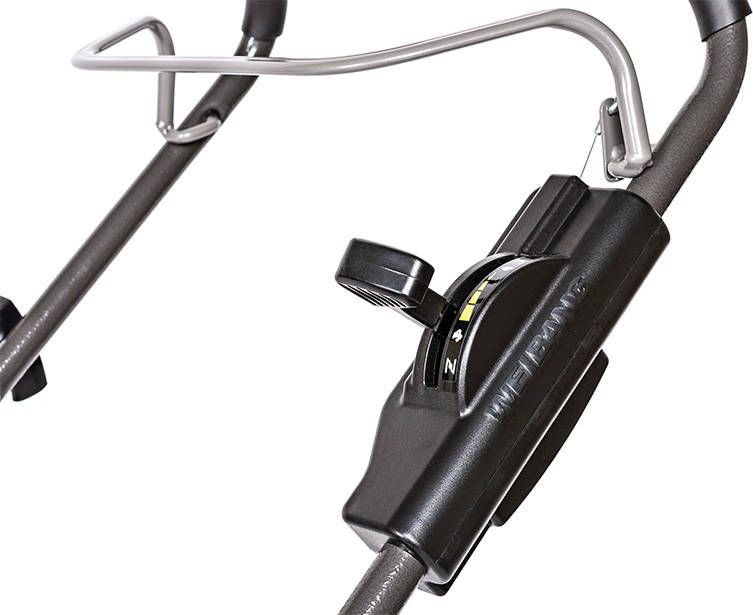 • Der Rasenmäher lässt sich sehr einfach verstauen, da er zusammengeklappt werden kann.