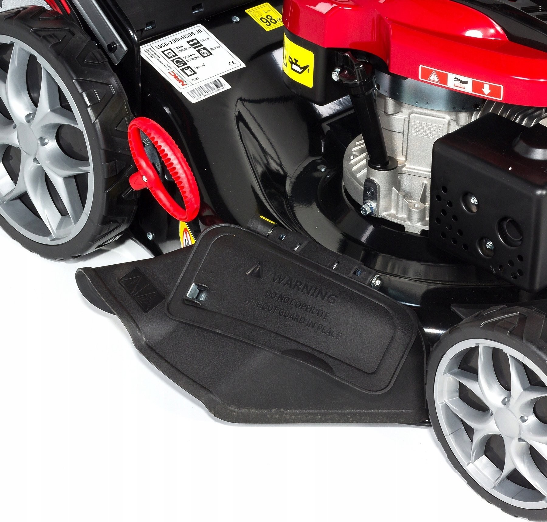 Der Rasenmäher wird von einem einzylindrigen Loncin-Viertaktmotor mit 196 cm³ Hubraum angetrieben, der eine Leistung von 4,9 PS (3,2 kW) erzeugt. Dank moderner Technologien erfüllt der Rasenmäher die europäischen Abgasnormen (EURO 5), was ihn umweltfreundlicher macht.