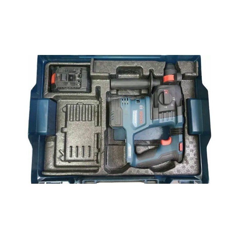 Kompakter und ergonomischer Bohrhammer dank gut ausbalanciertem Schwerpunkt und optimiert für Überkopfbohrungen. Ausgestattet mit Rückstoß- und Vibrationsdämpfung für zusätzliche Sicherheit des Benutzers. Möglichkeit zum staubfreien Bohren in Verbindung mit dem neuen Adapter GDE 18V-12. Langer Betrieb und längere Laufzeit dank optimiertem Akku-Management.