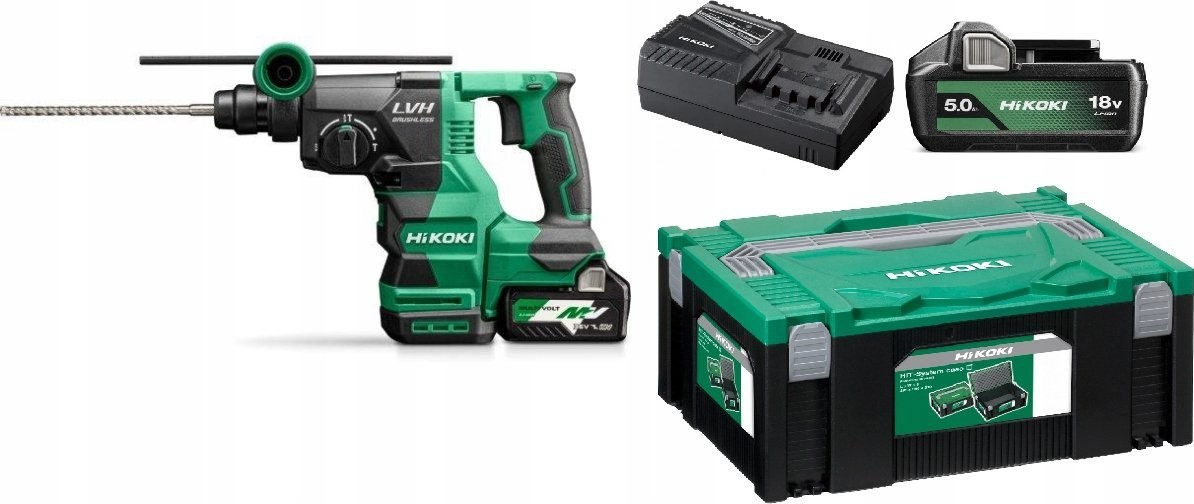 HIKOKI. 18-V-Bohrhammer DH1826DAWPZ 3,2 J 2x5,0 Ah BL HITSYSTEM