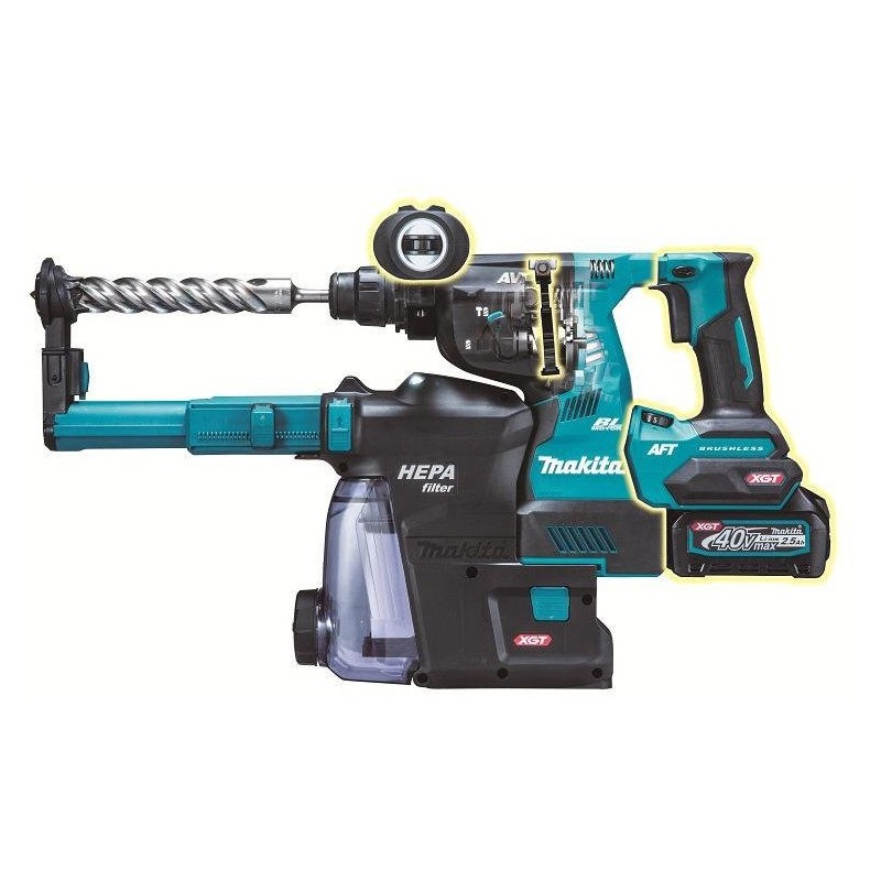 Ausgestattet mit einem 40V MAX-Akku bietet der Makita-Bohrhammer hervorragende Leistung und Mobilität, wodurch die Notwendigkeit von Kabeln entfällt. So können Sie überall arbeiten, ohne Einschränkungen durch den Zugang zu einer Stromquelle.