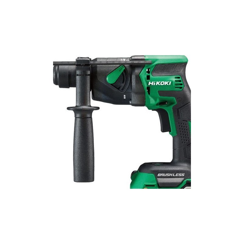 Der SDS+-Schlagbohrer mit Pistolengriff, angetrieben von einem leistungsstarken bürstenlosen 18-V-Motor, ist nicht nur kraftvoll, sondern auch kompakt, was für hervorragende Handhabung und Arbeitskomfort sorgt. Er verfügt über 2 Betriebsmodi (Bohren und Schlagbohren) sowie die klassenbeste Bohrgeschwindigkeit. Das Gerät verfügt über eine elektronische Drehzahlregelung, einen rutschfesten Soft-Touch-Griff, eine LED zur Ausleuchtung des Arbeitsbereichs sowie das RFC-System, das den Anwender vor den negativen Auswirkungen eines Bohrer-Blockierens während des Betriebs schützt. Es verfügt zudem über eine AUTO-STOP-Funktion, mit der Arbeitsparameter wie die Bohrtiefe für aufeinanderfolgende Löcher programmiert werden können. Es ist mit allen Akkutypen der Hikoki-Slide-Serie kompatibel, einschließlich Multi Volt.