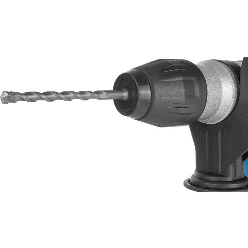 Der Bohrhammer ist mit einem 1010-W-Motor ausgestattet, der eine Schlagenergie von 4 J erzeugt. Die Drehzahl erreicht 800 U/min und die Schlagfrequenz beträgt 4000 Schläge pro Minute, was dieses Werkzeug äußerst leistungsstark und effektiv macht.