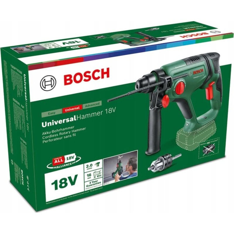 • Artikelname: Bosch Home & Garden Akku-Schlagbohrhammer 18 V, ohne Akku, 18-V-System, mit Rundschaftadapter, zum Bohren, Schlagbohren, Meißeln und Schrauben, im Karton