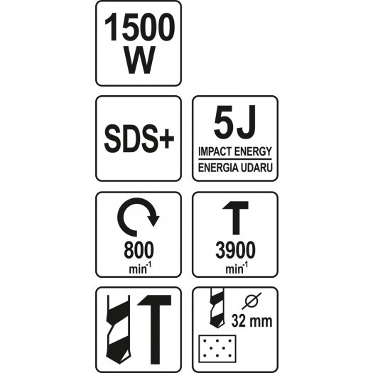 • SDS-PLUS-Bohrhammer mit 1500 W Leistung der Marke YATO