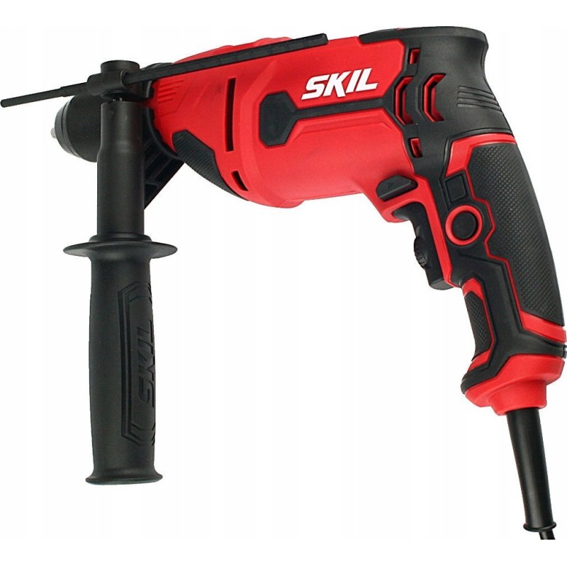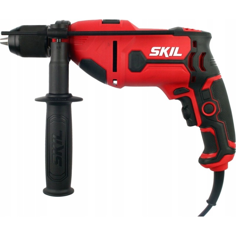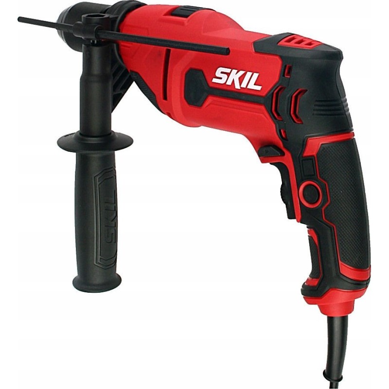 Der SKIL 6725 Schlagbohrer mit einer Motorleistung von 710 W ist für das Bohren von Löchern in Ziegel, Mauerwerk, Holz, Metall, Keramikfliesen und Kunststoffen vorgesehen. Der Schlagmechanismus ermöglicht das Bohren in Mauerwerk, wobei diese Funktion beim normalen Bohren und Schrauben ausgeschaltet werden kann. Das Werkzeug ist mit einem metallenen Schnellspannbohrfutter mit 13 mm Durchmesser und einer einzigen Hülse ausgestattet, wodurch ein Herausfallen des Bohrers während der Arbeit verhindert wird. Die Spindelarretierung erleichtert den Wechsel der Zubehörteile. Die Drehzahlregelung und -vorwahl sorgen zusätzlich für Vielseitigkeit und Kontrolle bei der Arbeit. Es besteht auch die Möglichkeit, den Schalter zu arretieren, um die Arbeit beim Bohren und Schrauben fortzusetzen. Die Schlagbohrmaschine verfügt über viele nützliche Funktionen, wie z. B. die Drehrichtungsumkehr, was besonders beim Lösen von Schrauben nützlich ist. Zudem sorgt das ergonomische Design mit Softgriff für mehr Arbeitskomfort. Das Modell SKIL 6725 AA ist mit einem Seitengriff und einem Tiefenanschlag ausgestattet.