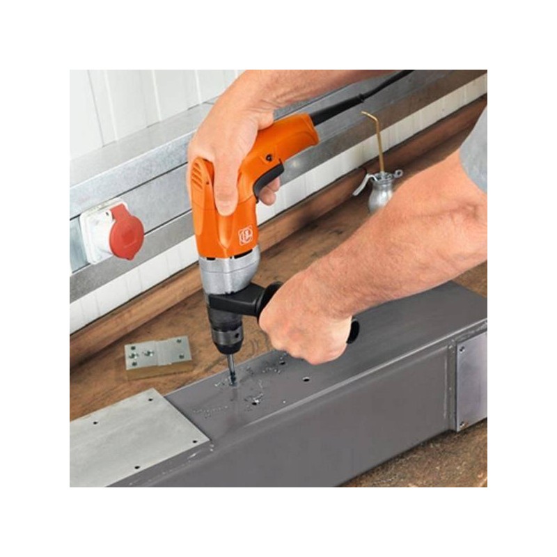 Bohrmaschine BOP 6 Fein 7 205 52 60 00 0 Handbohrmaschine bis 6 mm Hochdrehzahl-Ein-Gang-Bohrmaschine für Bohrungen bis 6 mm Durchmesser in Stahl, hohe Drehzahlstabilität, unverzichtbar bei der Metallbearbeitung. Drehrichtungsschalter. Präzisionsbohrfutter aus Metall. Hohe Drehgenauigkeit. Selbstspannende Spannbacken des Bohrfutters. Komfortabler FEIN-Handgriff. Elektronische Drehzahlsteigerung. 5 m langes Kabel. Befestigungshülse Ø 43 mm zur Befestigung in einem Bohrständer. Technische Daten: Leistungsaufnahme 500 W Nutzleistung 270 W Drehzahl unter Last 0 – 2.700 U/min Leerlaufdrehzahl 0 – 4.000 U/min Drehmoment bei max. Ausgangsleistung 3,5 Nm Anlaufdrehmoment 9 Nm Spannbereich des Bohrfutters 0,5 – 10 mm Bohrdurchmesser in Stahl 6 mm Bohrdurchmesser in Edelstahl 6 mm Bohrdurchmesser in Aluminium 10 mm Bohrdurchmesser in Holz 20 mm Gewinde der Bohrspindel 1/2 in-20 UNF Durchmesser der Spannhülse 43 mm Winkelmaß 23 mm Kabel mit Stecker 5 m Gewicht nach EPTA 1,70 kg Lieferumfang: 1 einhülsiges Schnellspann-Bohrfutter aus Metall SUPRA SKE 1 Zusatzfutter