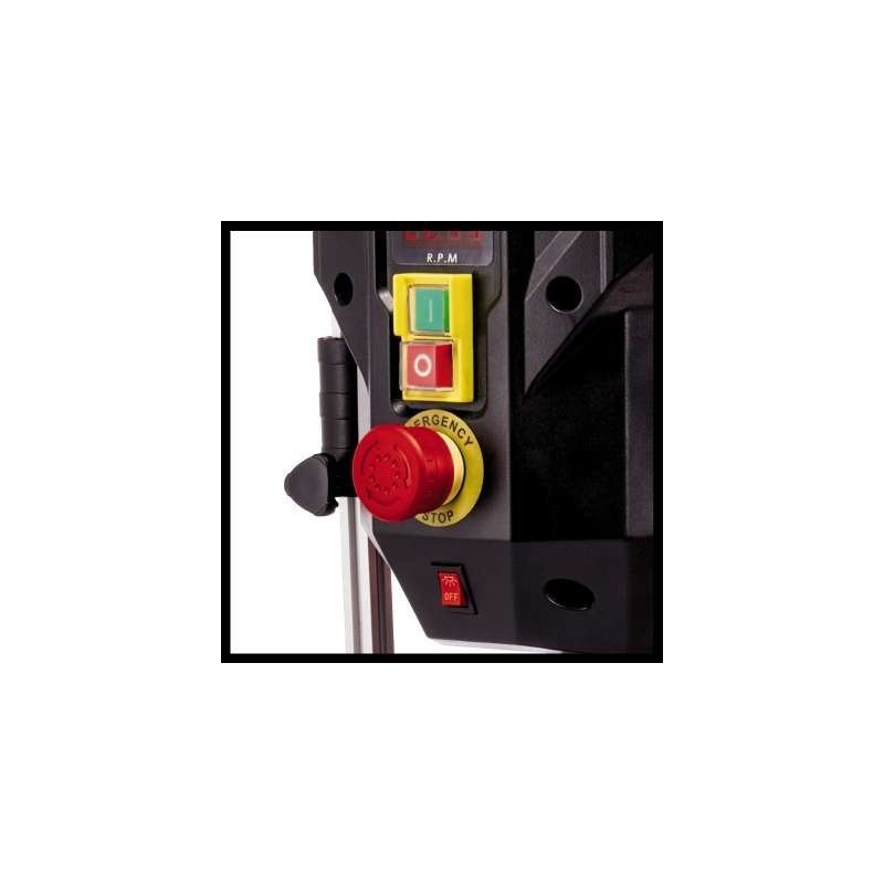Einhell TE-BD 750 E. Produkttyp: Tischbohrmaschine, Spannart: Zentralverriegelung, Spannfutter: B16. Drehzahl (min.): 450 U/min, Drehzahl (max.): 2500 U/min, Bohrerdurchmesser (min.): 1 mm. Abmessungen der Bohrmaschine: 243 x 243 mm, Schwenkbereich des Tisches: -45 – 45°. Leistung: 750 W, Eingangsspannung AC: 220–240 V, Eingangsfrequenz AC: 50 Hz. Produktbreite: 498 mm, Produkttiefe: 780 mm, Produkthöhe: 320 mm