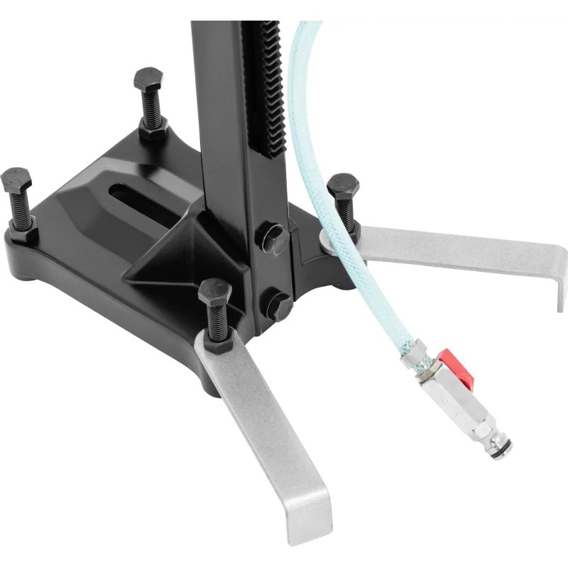 der Betonbohrmaschine der Marke MSW lassen sich Löcher in harte Baumaterialien wie Beton, Mauerwerk oder Asphalt bohren. Der Bohrständer mit Führungsschiene ermöglicht das Bohren selbst großer Löcher mit einem Durchmesser von bis zu 230 mm. Die Diamantbohrmaschine bietet eine Leistung von 3200 W und eine maximale Drehzahl von 750 U/min. Das Stativ mit stabilem Sockel und Führungsschiene ermöglicht präzise Ergebnisse auch in harten Baumaterialien. Dazu muss die Betonbohrmaschine mithilfe eines großen Hebels verschoben werden, um eine gleichmäßige Kraftübertragung zu gewährleisten. Zusätzlich ist das Kabel aus Sicherheitsgründen mit einem integrierten Fehlerstromschutzschalter (PRCD – Portable Residual Current Device) ausgestattet. Dieser bewährt sich sogar in Umgebungen mit hoher Luftfeuchtigkeit. Das Gerät verfügt zudem über einen Überlastschutz und einen Sicherheitsschalter. Beim Bohren kann man sich auf eine zuverlässige Wasserkühlung verlassen. Die aus hochwertigem geschmiedetem Stahl gefertigte Kupplung ist direkt in die Kernbohrmaschine integriert. Der Einsatz von Wasser reduziert den Verschleiß des Bohrers erheblich. Die Maschine erfordert daher weniger Wartung und hat eine längere Lebensdauer. Auch die beim Bohren entstehende Staubmenge wird reduziert, und der Kernbohrer erwärmt sich weniger.