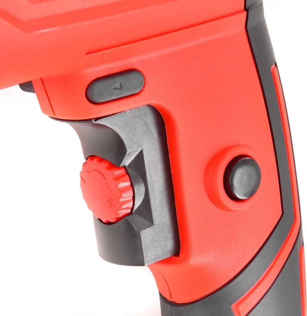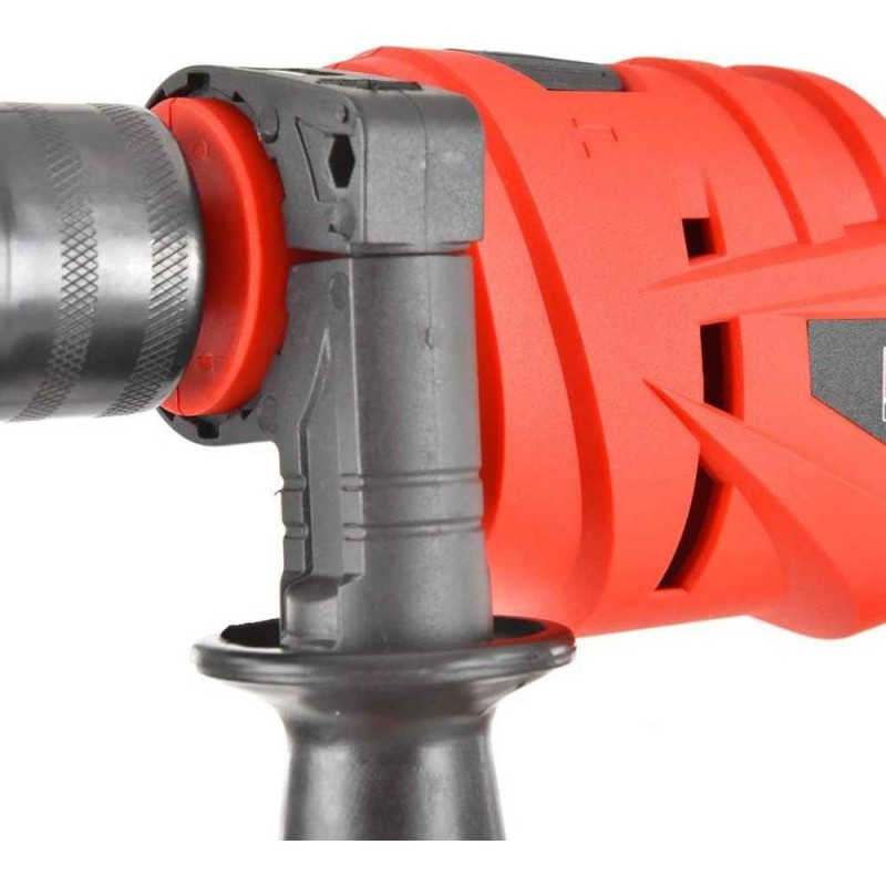 HECHT 1073 Leistungsstarker elektrischer Schlagbohrer der tschechischen Marke Hecht. Das Gerät verfügt über einen leistungsstarken Elektromotor mit einer Leistung von 1000 W. Es ist für den Einsatz im Haushalt, bei allen Arten von Renovierungs- und Montagearbeiten sowie in der Werkstatt oder im Service vorgesehen. Der Drehrichtungsschalter ist bequem direkt am Griff angeordnet, was ein schnelles und einfaches Umschalten während der Arbeit ermöglicht. Die Motordrehzahl liegt im Bereich von 0–2800 U/min. Der maximale Durchmesser der Befestigungswerkzeuge beträgt 13 mm. Maximaler Bohrdurchmesser in Metall 13 mm, in Beton 13 mm und in Holz 25 mm. Das Gerät verfügt über einen komfortablen und ergonomischen Handgriff. Im Lieferumfang enthalten sind ein hochwertiger abnehmbarer Seitengriff sowie ein Tiefenanschlag.