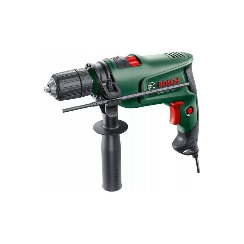 Der Bosch-Schlagbohrer EasyImpact 600 ermöglicht komfortables und präzises Bohren in Mauerwerk, Holz, weichem Beton und Metall. Das zweiteilige Schnellspann-Bohrfutter sorgt für einen schnellen und einfachen Bohrerwechsel; dazu reicht eine Drehung der Spindel. Das Werkzeug ist mit dem Bosch Electronic-System ausgestattet, das durch stufenweise Anpassung des Drucks auf den Schalter eine auf die Materialeigenschaften abgestimmte Drehzahl ermöglicht.