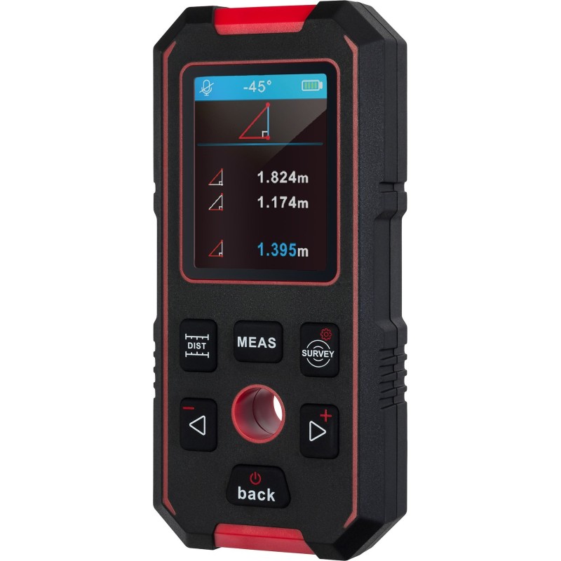• Einzel- und Dauermessungen, Längenmessung, Flächen- und Volumenberechnung, Berechnungen anhand von Formeln