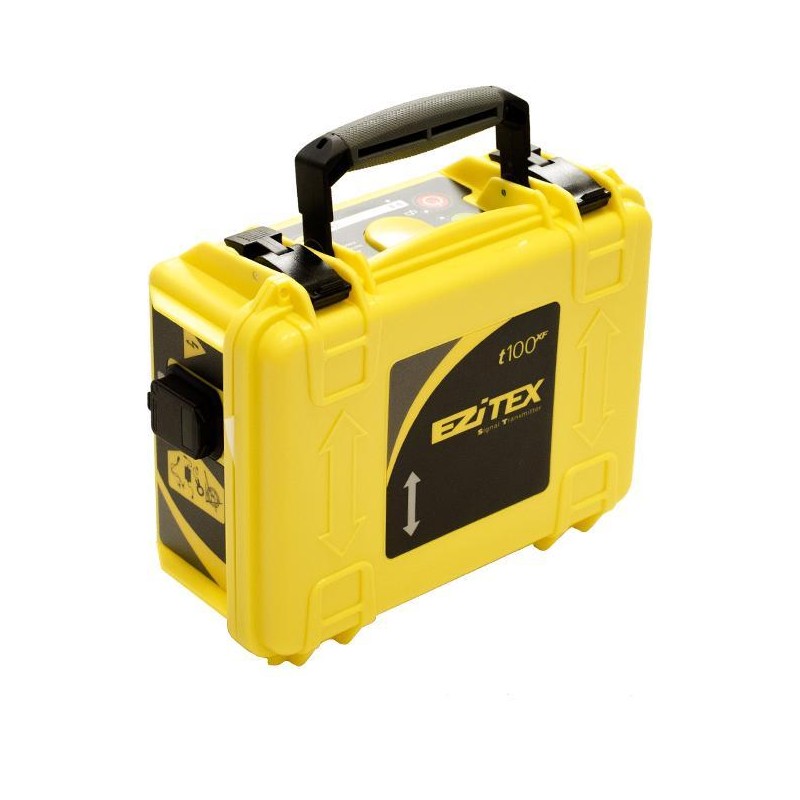 Der Generator Geomax EziTex t100xf erzeugt ein elektrisches Signal in Form eines Stroms in einem Metallkabel, wodurch das Kabel von einem Detektor, der auf derselben Frequenz arbeitet, erkannt und identifiziert werden kann. Der Einsatz des Detektors in Verbindung mit dem Generator ermöglicht eine genauere Ortung sowie die Bestimmung der Tiefe. Betriebsmodi des Generators EziTex t100xf induktiv (ohne Anschluss, 8 kHz oder 33 kHz) – Einsatz hauptsächlich an unter Spannung stehenden Kabeln Induktion ist eine einfache Methode, um ein Signal in einem Kabel zu erzeugen, ohne den Generator physisch an das Kabel anzuschließen. Der Signalgenerator nutzt eine interne Antenne zur Signalübertragung; dabei ist zu beachten, dass das Signal in vielen Kabeln in der Nähe des Signalgenerators erzeugt wird. galvanisch – (mit Anschluss – 8 kHz, 33 kHz, kombiniert 8/33 kHz, zusätzlich 512 Hz oder 640 Hz) – Einsatz an Metallinstallationen, an Kabeln (Signalleitung mit Klemme – optionales Zubehör) Dies ist die effizienteste Art, das Kabel anzuschließen, und sollte verwendet werden, sobald die Bedingungen dies zulassen. Das Kabelset des Signalgenerators oder anderes verfügbares Zubehör wird an das Kabel angeschlossen, das erkannt und identifiziert werden soll. Parameter: 33-kHz-Modus für den Einsatz in normalem Gelände 8-kHz-Modus für den Einsatz bei anderen Installationen. Der gemischte Modus 8 und 33 kHz (nur im galvanischen Modus) ist in Bereichen mit dicht verlegten Leitungen nützlich, wo sowohl der 8- als auch der 33-kHz-Modus bessere Ortungsergebnisse liefern können. Die besten Ortungsergebnisse lassen sich erzielen, indem man die Modi (Betriebsfrequenzen) am Detektor umschaltet. Der 640-Hz-Modus dient zur Ortung über große Entfernungen und zur Reduzierung von Signalübersprungen auf andere Leitungen. Er wird hauptsächlich in Ländern verwendet, in denen die Frequenz im Stromnetz 50 Hz beträgt. Der 512-Hz-Modus dient zur Ortung über große Entfernungen und zur Reduzierung von Signalübersprungen auf andere Leitungen. Er wird hauptsächlich in Ländern verwendet, in denen die Netzfrequenz 60 Hz beträgt. Fragen Sie nach weiteren Informationen unter Tel. 32 428 11 32