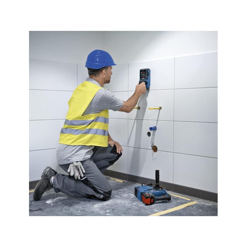 Die integrierten Radar- und Induktionssensoren von BOSCH ermöglichen eine schnelle und sehr genaue (bis zu 5 mm) Ortung von Fremdkörpern in Wänden, Decken und Böden und reduzieren so das Risiko von Schäden durch Bohren an der falschen Stelle auf ein Minimum.