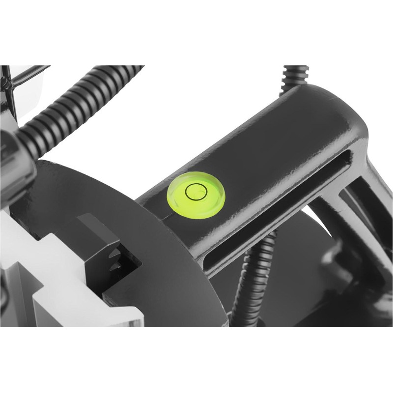 Die einfache Bedienung des Geräts ist den großen Tasten zu verdanken, die sich auf einer Seite der Bohrmaschine befinden. Mit ihnen lassen sich der Motor und der Elektromagnet starten sowie die Bohrrichtung auswählen. Dort befindet sich auch ein stufenloses Drehknopf zur Drehzahlregelung. Für die korrekte Ausrichtung der Maschine sorgt eine eingebaute Wasserwaage.