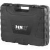 Die MSW-Magnetbohrmaschine ermöglicht dank ihrer Konstruktion den Einsatz unter schwierigen Bedingungen und in verschiedenen Positionen, z. B. vertikal. Dies wird durch einen starken Elektromagneten mit einer Kraft von 13.800 N ermöglicht, der das Gerät in einer stabilen Position hält. Das relativ geringe Gewicht und das lange Netzkabel (2 m) ermöglichen es, die Bohrmaschine an jedem beliebigen Ort aufzustellen. Der Koffer erleichtert den Transport des gesamten Sets.
