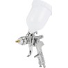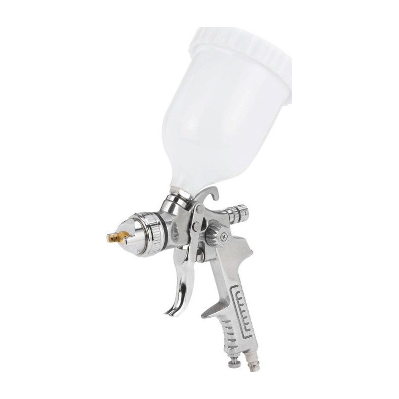 Die professionelle Lackierpistole mit Schwerkraftdose ist ein robustes und präzises Arbeitsgerät für anspruchsvolle Lackierarbeiten bei einem Arbeitsdruck von 3 bis 3,5 bar. Dank der soliden Verarbeitung und der präzisen, sauberen Fertigung wird ein sehr guter Lackierqualitätsstandard erreicht. Diese professionelle Spritzpistole ist mit einem Punkt-/Breitstrahlregler ausgestattet, der eine genaue Anpassung des Sprühmusters an jede Aufgabe ermöglicht. Um die Arbeitssituation bestmöglich zu berücksichtigen, ermöglicht die schwenkbare Düse eine stufenlose Einstellung des Breitstrahls von horizontal bis vertikal. Der Farbmengenregler sorgt für eine präzise Dosierung der Farbe, und der Luftmengenregler zur feinen Einstellung der Druckluftzufuhr direkt am Gerät selbst erspart so manchen Gang zum Kompressor. Mit einem Fassungsvermögen von 0,6 Litern im Schwerkraftbehälter bietet er ausreichend Vorrat für lange Arbeitssitzungen. Im Lieferumfang enthalten ist ein Anschlussstück für den Schnellanschluss des Druckluftschlauchs.