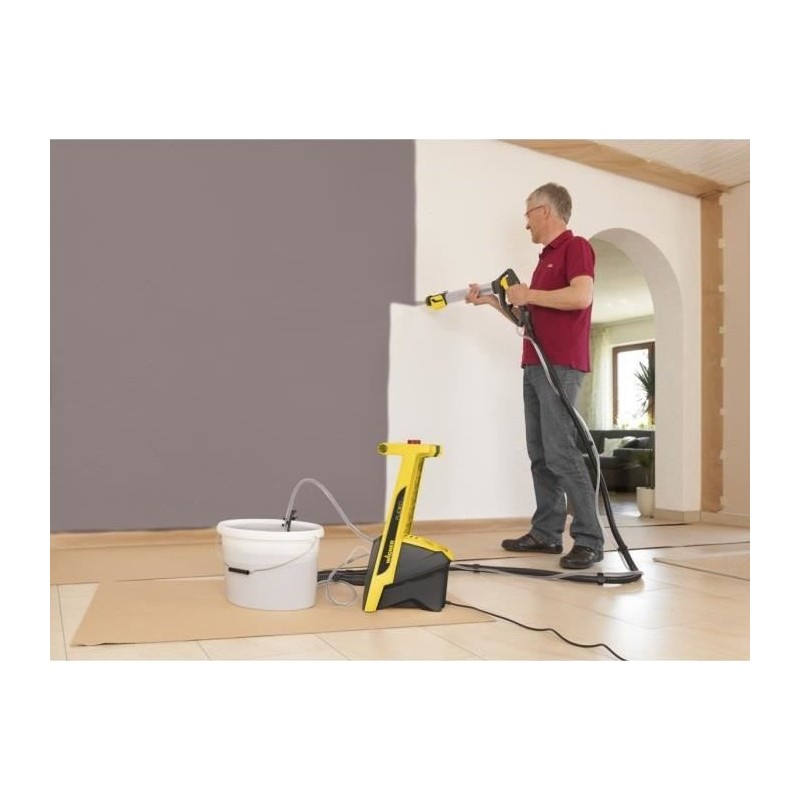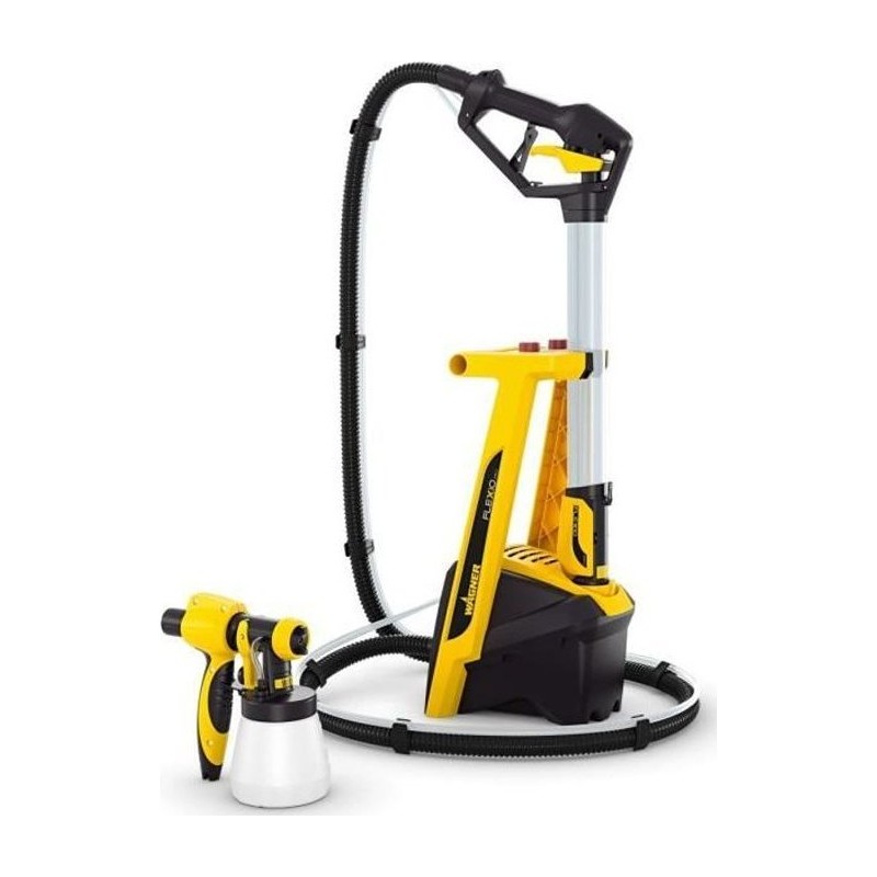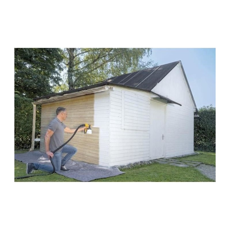 Im Lieferumfang enthalten sind 2 Düsen: eine Ispray-Lanze für Wandfarben sowie eine 600-ml-Spritzpistole für Holz und Metall, geeignet für Lacke und Beizen – 630 W – Durchfluss: 525 ml/min – Leistung: 15 m² in 5 min – Gewicht: 3,5 kg – Flexio-Technologie – 70 cm lange Lanze – Auto-Reinigungsfunktion – Patentierte Ispray-Düse – Verriegelbare Front – Einstellbarer Strahl – Leistungsstarke X-Boost-Turbine.