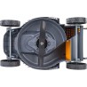 Der Rasenmäher verfügt über eine zentrale Schnitthöhenverstellung mit drei Positionen: 30, 50 und 70 mm. So kann der Benutzer die Schnitthöhe ganz einfach an seine individuellen Bedürfnisse und die Bedingungen des Rasens anpassen, was den Bedienkomfort erhöht.