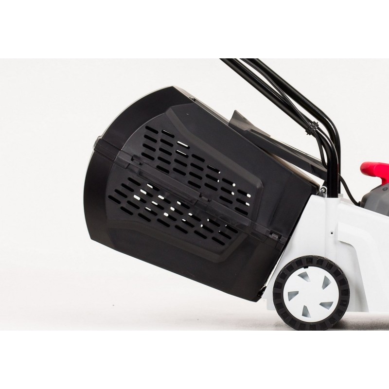 Das Gehäuse aus hochwertigem Kunststoff sorgt für Langlebigkeit und Widerstandsfähigkeit gegen Beschädigungen. Das geringe Gewicht der Maschine von nur 12,3 kg garantiert hervorragende Manövrierbarkeit und einfache Handhabung. Diese Lösung werden sicherlich Frauen zu schätzen wissen, die sich nur ungern oder gar nicht an die Arbeit mit einem schweren Benzinrasenmäher wagten.