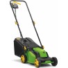Dieser Elektromäher ist für die Pflege kleinerer Zierrasenflächen vorgesehen. Der Motor hat eine Leistung von 1200 W und die Schnittbreite beträgt 32 cm. Der 30 Liter fassende Grasfangkorb aus Kunststoff ist mit einer Füllstandsanzeige ausgestattet. Die Schnitthöhe lässt sich in 3 Stufen einstellen: 20/38/56 mm. Der vordere Teil enthält ein Gegengewicht, das ein Umkippen des Rasenmähers verhindert, wenn der Grasfangkorb voll ist. Der klappbare Griff ist mit einer Kabelarretierung ausgestattet, die verhindert, dass sich die Stecker während des Betriebs lösen. Der Schalter des Rasenmähers ist mit einer Sicherheitsverriegelung ausgestattet, um ein unbeabsichtigtes Starten der Maschine zu verhindern. Die empfohlene Mähfläche beträgt 450 m².